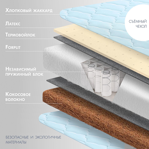 кокос, латекс, термовойлок, блок независимых пружин