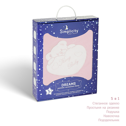 Simplicity Dreams — это комплект детского постельного белья высочайшего качества для использования в люльках, колыбелях и приставных кроватках с размером спального места 80х41 см.