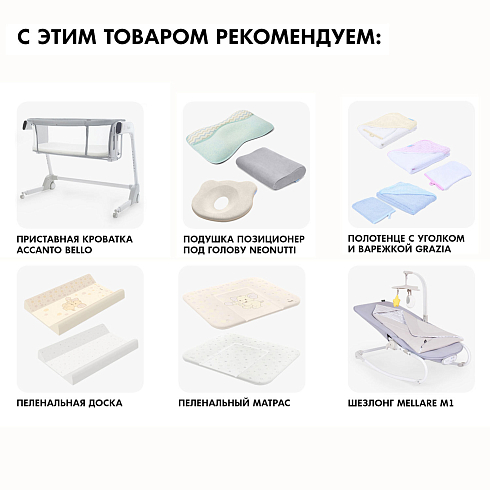 Детский матрас в приставную электронную колыбель Nuovita Accanto Bello легко решит вопрос с обустройством его спального места, так как его размеры идеально подходят для данной колыбельки, а его наполнение продумано для комфорта и уюта новорожденного.
