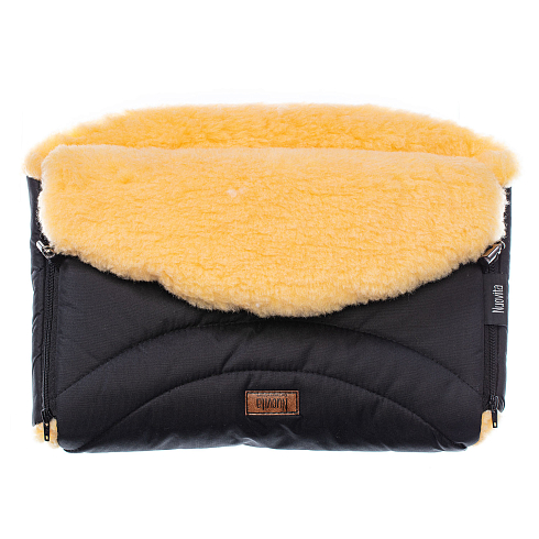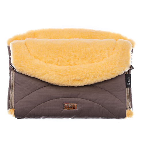 Наружная поверхность — мембранная PU-ткань, которая является водо- и ветронепроницаемой, позволяя испарениям выходить наружу и не препятствуя дыханию кожи. Сочетание шерстяного ворса и мембранной ткани не допускает переохлаждения либо перегрева, поэтому изделие может применяться в широком диапазоне температур: от 0 до -30 градусов. Под тканью находится слой синтепона. Два замка, вшитые по бокам, надежно закрепляют изделие на ручке коляски. Окантовка замков предохраняет зубцы «молнии» от попадания меха, позволяя быстро снять или надеть муфту. По центру верхняя и нижняя части соединяются двумя кнопками-фиксаторами. Предусмотрена регулировка глубины при помощи отворотов, которые имеют пластиковые зажимы. Вся фурнитура рассчитана на длительное использование и идеально сочетается с цветом ткани, украшая изделие.
