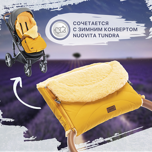 Меховая муфта NUOVITA TUNDRA — нарядный, комфортный аксессуар для коляски, благодаря которому руки родителей будут защищены от холода во время прогулок с ребенком. Данная модель подходит для всех типов колясок и санок, имеющих сплошную ручку. Внутренняя часть сделана из пушистого меха, который представляет собой смесовую овечью шерсть на текстильной основе. Высота меха 12 мм, он дарит коже ощущение мягкости и комфорта, а объемный воздушный слой отлично удерживает тепло внутри.